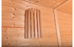 Close vents before turning the sauna on for a slightly shorter warm-up time, then open vents when entering the sauna. Leave them open during a cool-down period or prop the door open to fully evaporate moisture.
