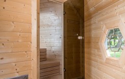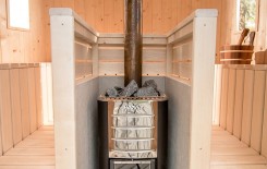 The wood-burning system heats up the rocks evenly, the sauna warms up quickly and the result is soft heat. Create pleasant steam by sprinkling water on the rocks.