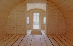 Round Sleeping Barrel is perfect for a camping place. It is made from a spruce wood and feels very nature-friendly. Our 2.2 m diameter sleeping barrel has two rooms: one is for sleeping and another one for sitting, dining and storing your things. With this barrel your camping place will look different, nature-friendly and cozy.