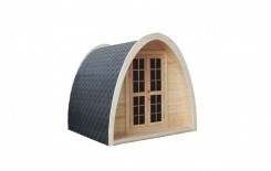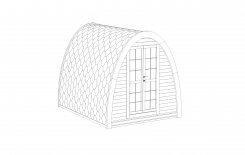 Camping Pod is made from spruce or thermo wood. The thickness of the pod walls is 38 mm; the thickness of the solid wood flooring is 28 mm. Camping Pod is 2.4 m wide and 2.6 m high. A roof is covered with bitumen shingles of a selected color: black, red or green.