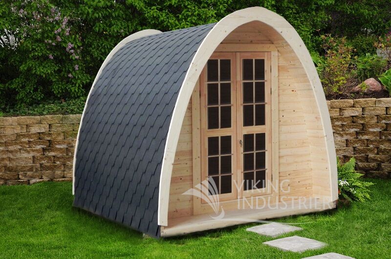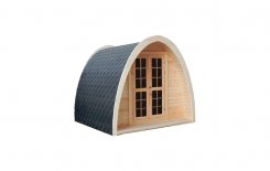 Camping Pod is made from spruce or thermo wood. The thickness of the pod walls is 38 mm; thickness of the solid wood flooring is 28 mm. Camping Pod is 2.4 m wide and 2.6 m high. A roof is covered with bitumen shingles of a selected color: black, red or green.