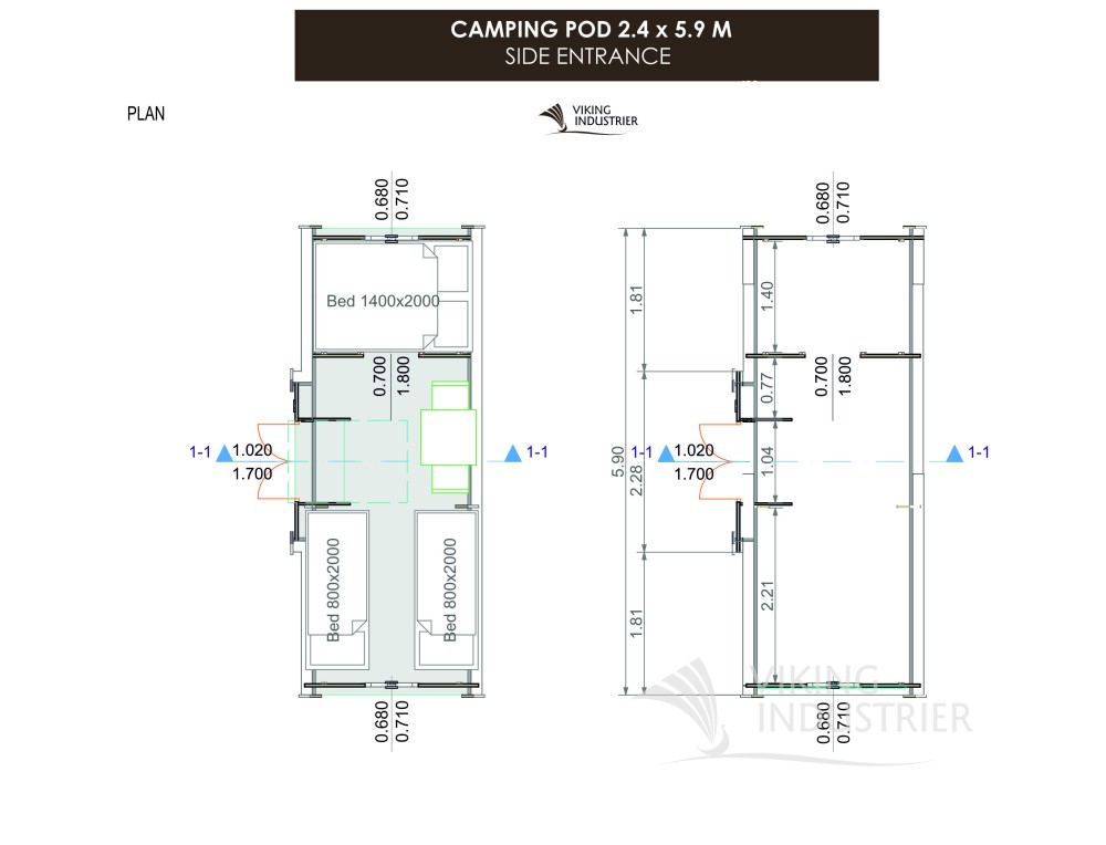 Camping Pod 2 4 x 5 9 m WITH SIDE ENTRANCE