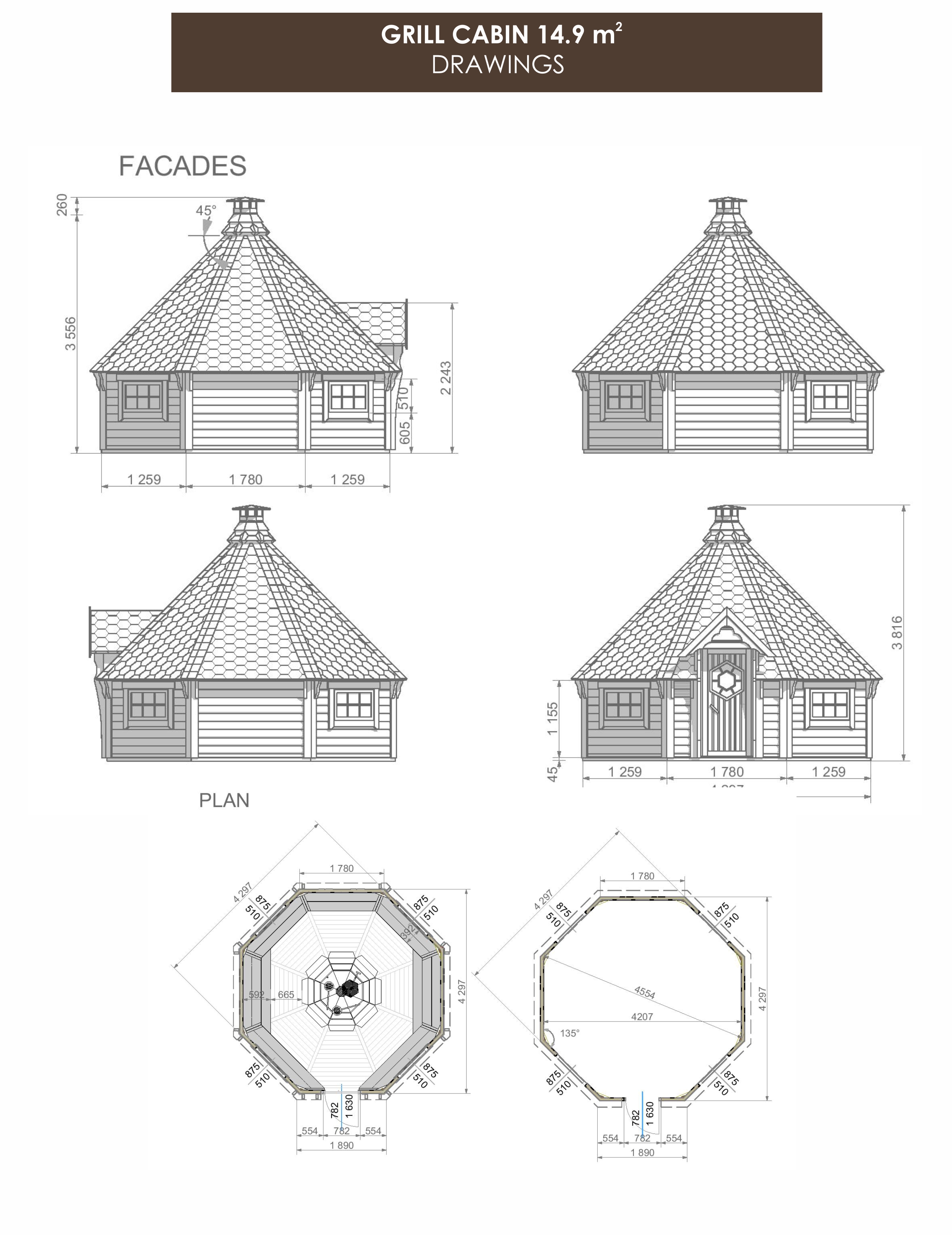 Grill Cabin is delivered to the customer not assembled but fully complete, with detailed assembly instructions and drawings, and packed on a pallet (KIT).