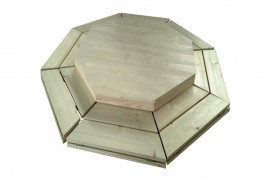 Also, there are seven benches in the cabin; two of these benches easily transform into sleeping benches: just turn over the additional board. The floor is easily assembled from separate components.