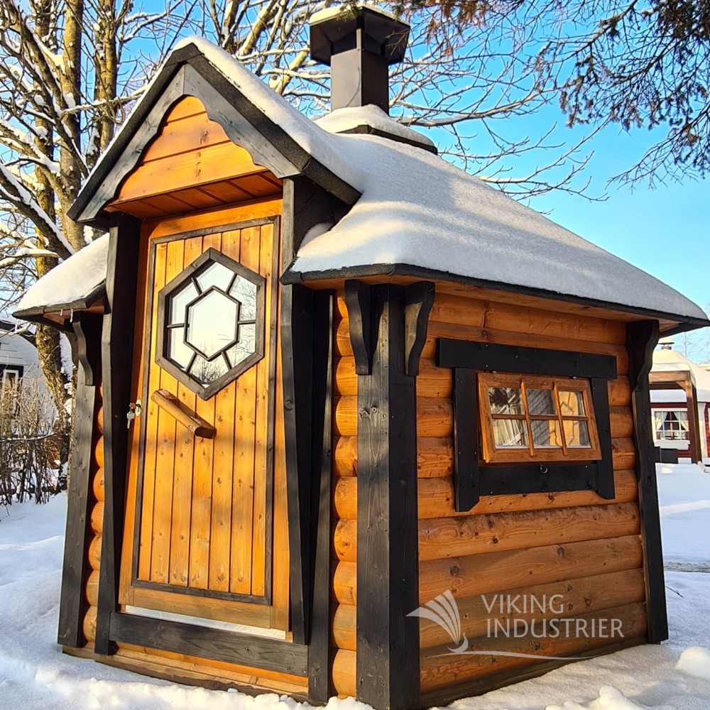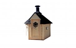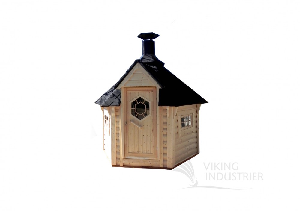 Designed to blend seamlessly into your outdoor landscape, the Grill Cabin exudes elegance and functionality. Its robust construction, featuring rounded spruce boards for the walls and a sturdy six-element roof, ensures years of enjoyment in all weather conditions. The cabin roof is covered with bitumen shingles (different colors can be selected), and there are three opening double-glazed windows. The cabin gracefully complements your garden's aesthetic.