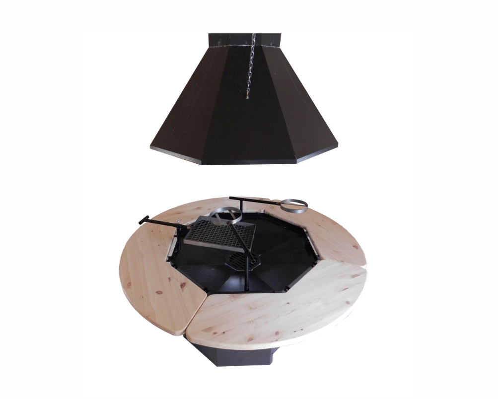 - When burning wood we recommend use a Grill table metal safety fence.